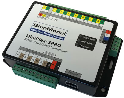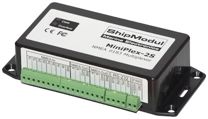 The MiniPlex-3 series NMEA 0183 multiplexers combine NMEA 0183 sentences from up to four sources. These sentences can be routed to two NMEA 0183 outputs and one or more host interfaces.